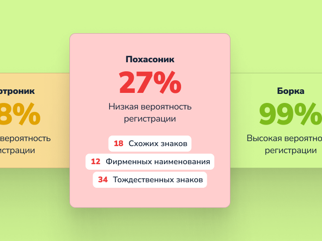 - Бесплатная проверка товарного знака в течение 15 минут после обращения;